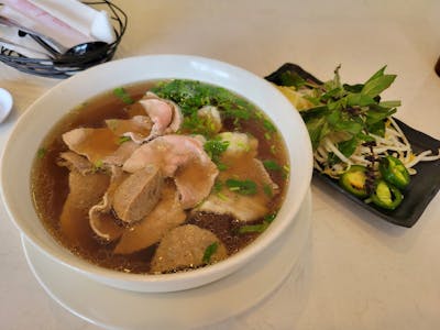 This was the hands down best pho I’ve ever eaten! I had the rare steak and fatty brisket pho. The restaurant is beautiful and very clean. The service was fantastic! Definitely worth a visit!